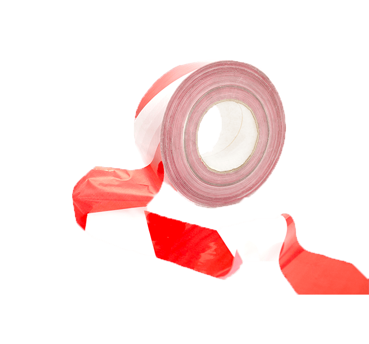 Create temporary barriers to hazardous areas. Durable and easy to apply to inside or outside areas. Red and white striped means the tape is highly visible. Strong non-adhesive polyethylene barrier tape for industrial environments.