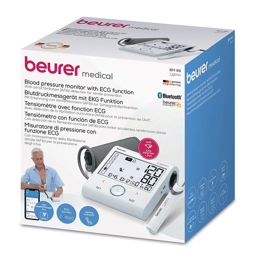 2-in-1 combination device In addition to measuring blood pressure, the 1-channel ECG device records heart rhythm and provides information about the average pulse value, as well as any divergence from a normal ECG. This medical device also comes with the free “beurer Health Manager Pro” app.