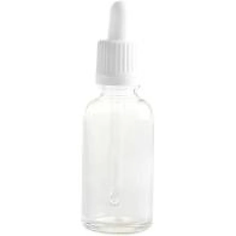 Dropper Bottles, Clear Glass, White Pipette Lids