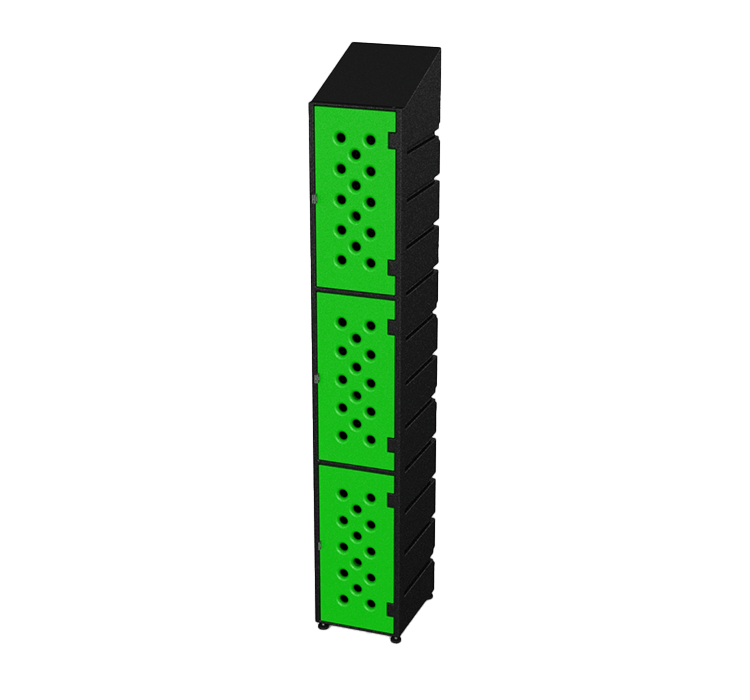 Our 3, 4, and 6 Tier Ecolite lockers are exclusively available in a sleek Black body with elegant light green perforated doors, adding a pop of color to your space.