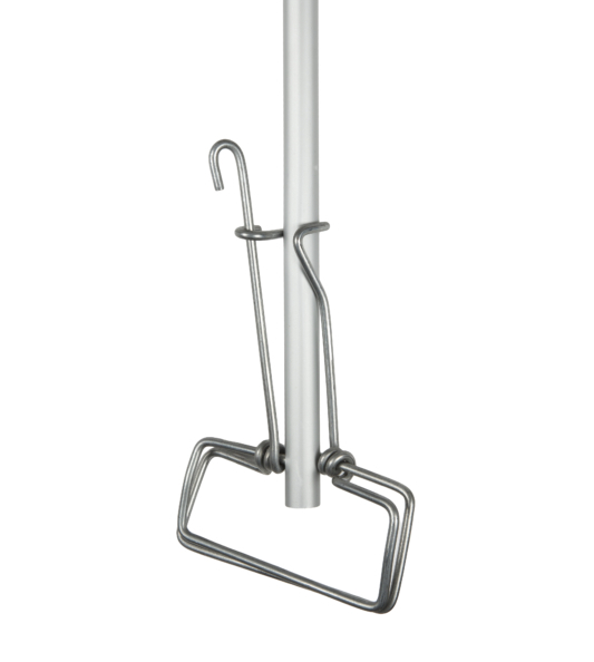 Holder for fan mop heads. It comes with a spring clip and aluminium handle