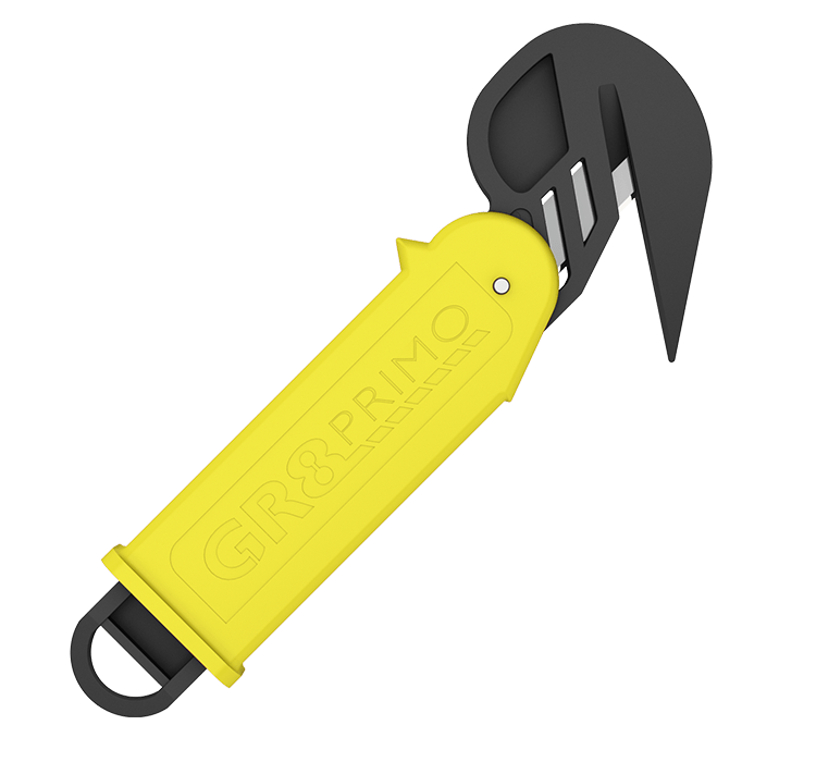 Versatile enclosed blade safety knife with the option of blade replacement. Ideal for cutting, shrink wrapping, strapping, and box opening. Prevents cut related accidents with pocket and finger safe enclosed blade. Built-in tape cutter