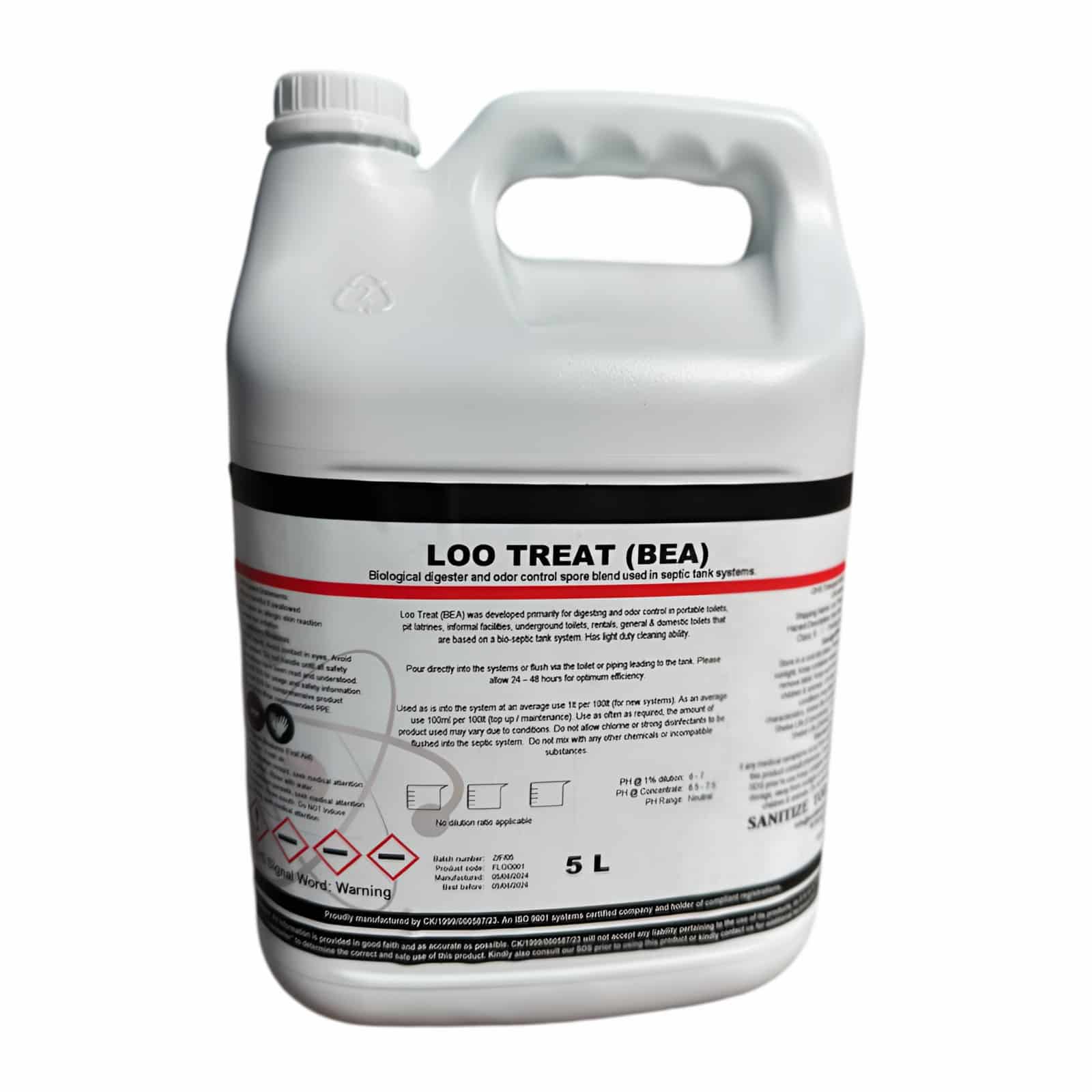 Loo Treat BEA , is a potent bio-enzyme treatment for pit toilets, pit latrines and long drops. Loo Treat BEA rapidly breaks down solids , reducing odors flies and disease causing pathogens. Loo Treat BEA is a biological toilet treatment.