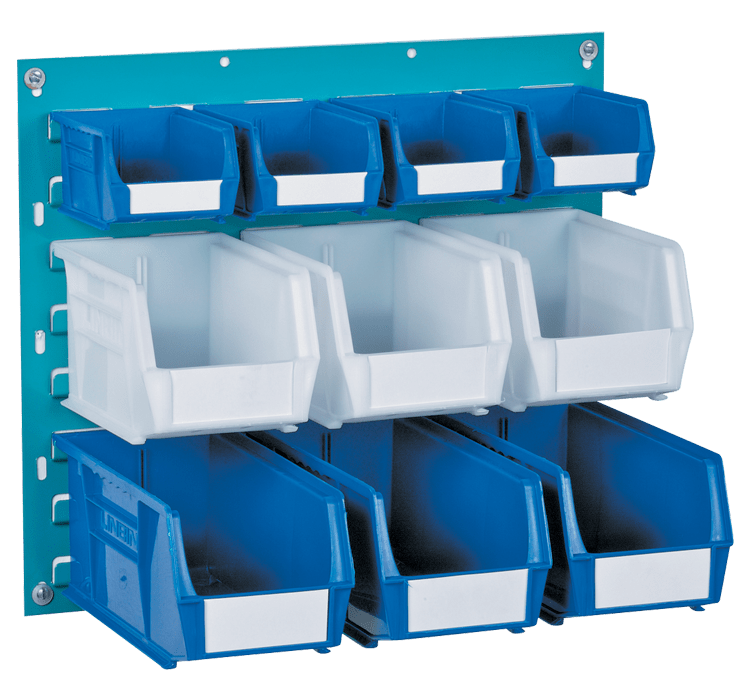 500 x 500 Louvre Panel complete with 10 Navy & White Linbin ® Storage Bins 4 x Size 2 Linbin ® Storage Bins 3 x Size 4 Linbin ® Storage Bins 3 x Size 5 Linbin ® Storage Bins