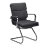 Padded medium back chair made with black bonded leather comes with torsion knee tilt mechanism. Chrome spider base, chrome arms with leather cover.