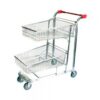 Built to the strictest standards, this steel shopping trolley is an indispensable tool for liquor stores, designed to facilitate the easy transport of both bottles and cases. With a robust construction that ensures stability and durability, this trolley features a spacious top basket ideal for securely holding bottles, while the lower shelf accommodates larger cases, making it perfect for handling a variety of items in one go. The trolley is equipped with double ball-bearing castors that provide exceptional manoeuvrability, allowing you to navigate through crowded aisles effortlessly, even when fully loaded. Its stable design ensures that it remains upright and balanced, reducing the risk of spills or accidents during use. Additionally, the trolley boasts a nesting function, enabling multiple units to stack neatly when not in use, which is a significant advantage for space management in busy retail environments. The large platform base and basket are thoughtfully designed to cater to both small, fragile items and larger, heavier products, ensuring that you can transport everything you need without hassle. This versatility makes it an essential addition to any retail setting, enhancing the shopping experience for customers while improving operational efficiency for staff. Whether you are stocking up on popular beverages or managing inventory, this steel shopping trolley is built to meet the demands of a busy store, combining practicality with a sleek, professional appearance that complements any retail space.